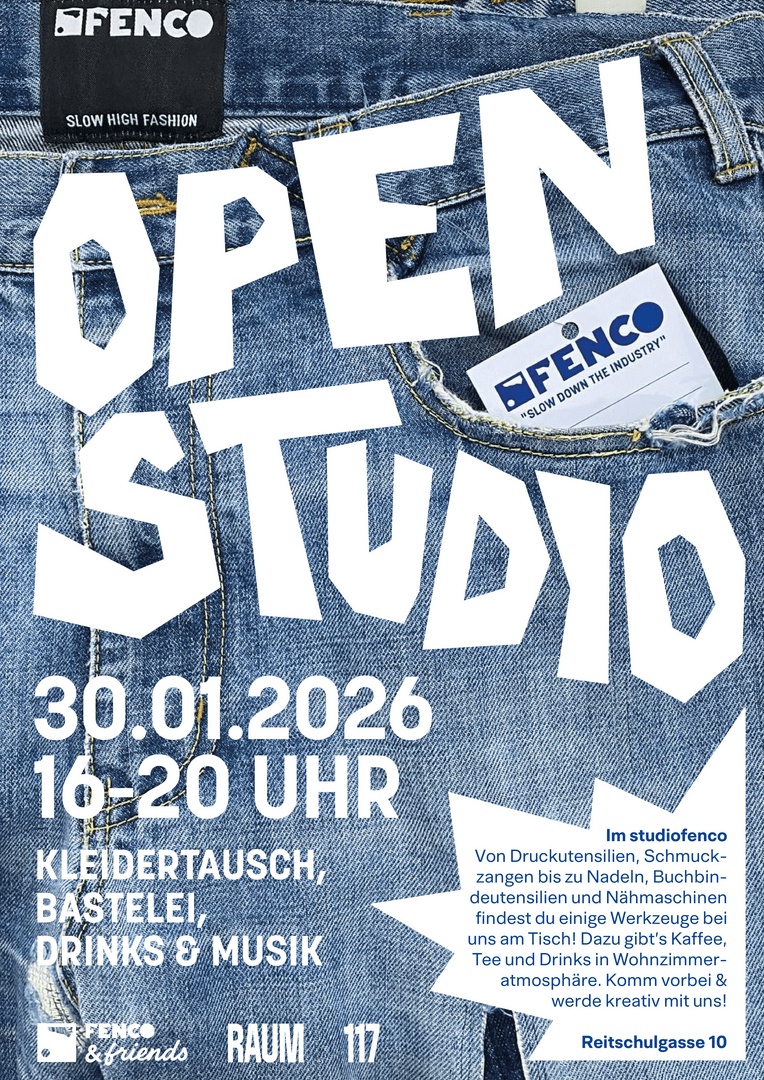 FENCO&friends öffnet einmal im Monat die Tür zu einem open Studio für Austausch, Kreativität und Begegnung. Für den Kleidertausch bringe deine preloved Teile mit und entdecke neue Lieblingsstücke, die du gleich vor Ort, bei unserem Handwerkstisch, neu gestalten kannst. Von Druckutensilien bis Nadeln, Faden und Nähmaschinen findest du einige Werkzeuge bei uns am Tisch! Dazu gibt’s Kaffee, Tee und Drinks in Wohnzimmeratmosphäre.
