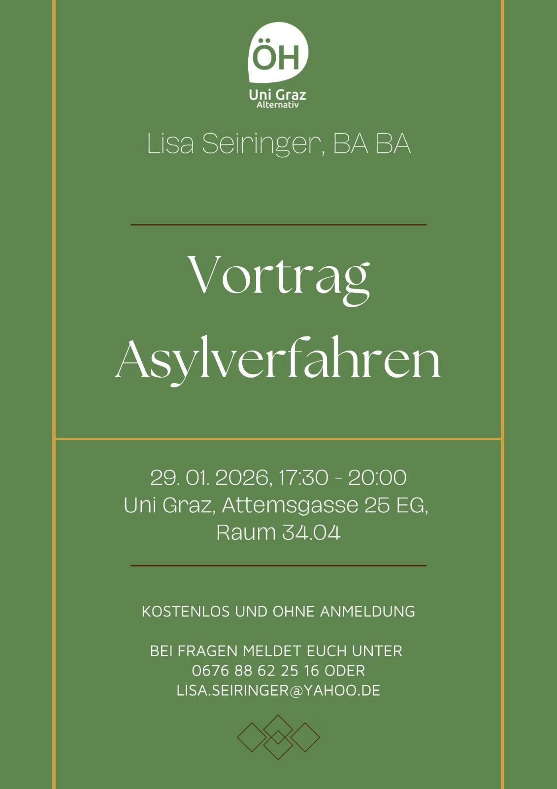 29. Jänner 2026 von 17:30 bis 20:00. Attemsgasse 25, Erdgeschoss, Raum 34.04. Kostenlos und ohne Anmeldung. Bei Fragen: Lisa.seiringer[ät]yahoo.de oder null sechs sieben sechs 88 62 25 16